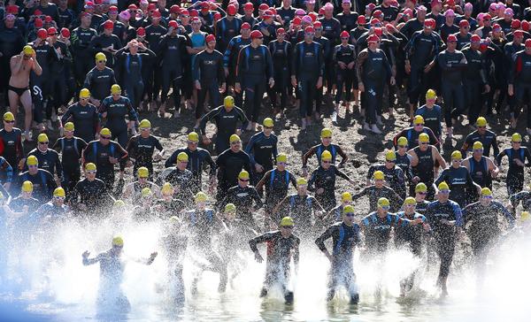 Swimmers starting the 2012 Bay of Islands race(Photo: Simon Watts, BWMedia; click to enlarge) |